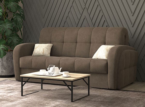 Преимущество дивана - механизм аккордеон, который при раскладывании образует высокое ровное спальное место, по комфорту сравнимое с настоящими кроватями. Кроме этого, только такой механизм позволяет выбирать размер дивана из 5 вариантов: 131/171/191/206/231 см.