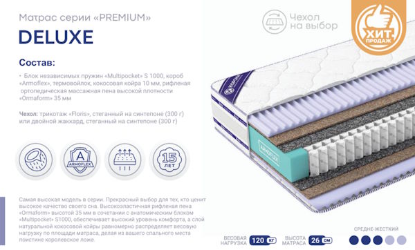 | Тип матраса | Пружинный - Multi Pocket S1000 |