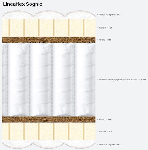 Анатомические матрасы линии ERGONOMICA - это матрасы класса «deluxe», сочетающие в себе истинное итальянское качество, передовой дизайн и лучшие материалы.  Матрас Sognio для наиболее требовательных к мягкости, комфорту и уюту людей.