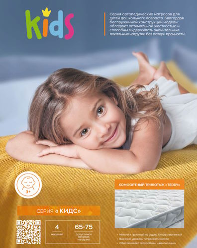 Более высокая версия модели «Vita Kids» для детей дошкольного возраста. Моноблок пенополиуретана высотой 150 мм будет обеспечивать необходимую поддержку позвоночника и способствовать формированию правильной осанки у ребенка. Благодаря своей простой и, в то же время, прочной конструкции, данный матрас обладает устойчивостью к прыжкам и не деформируется при локальных нагрузках. Все материалы, используемые в модели гипоаллергенные и вентилируемые.